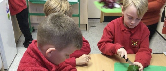 Year 3 had a busy time during Food Week! They wrote recipes, talked about what constitutes healthy eating and created a healthy day's food containing the main food groups. They also learnt about food hygiene and keeping safe. They then followed their recipe to create chicken fajitas and salsa.
